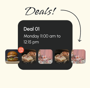 Happy hours, daily specials, and local promos—organized and easy to explore.